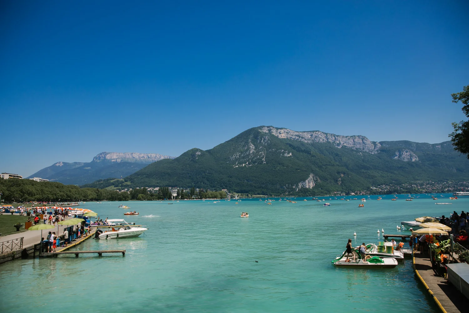 Jeffery, Ella, my parents, and I traveled to France for two weeks to watch the Women’s World Cup finals in Lyon. It started with jetlag, and a level of exhaustion I had forgotten existed. And also a heat wave and accommodations so awful that we hightailed it out of there, foregoing a refund. Our first stop was Brison-Saint-Innocent, a small village outside Aix-les-Bains on Lac du Bourget. We stayed on the converted third floor of a beautiful old home with an indoor pool and kittens in the basement. Our hosts had three little kids, and many of their outgrown toys were stored in our bedroom—the toy fire truck and Calico Critters were particularly invaluable at 3 a.m. when our girl was up for the day. We spent one afternoon at that big beautiful lake and another one driving around it, before heading to the Alps.