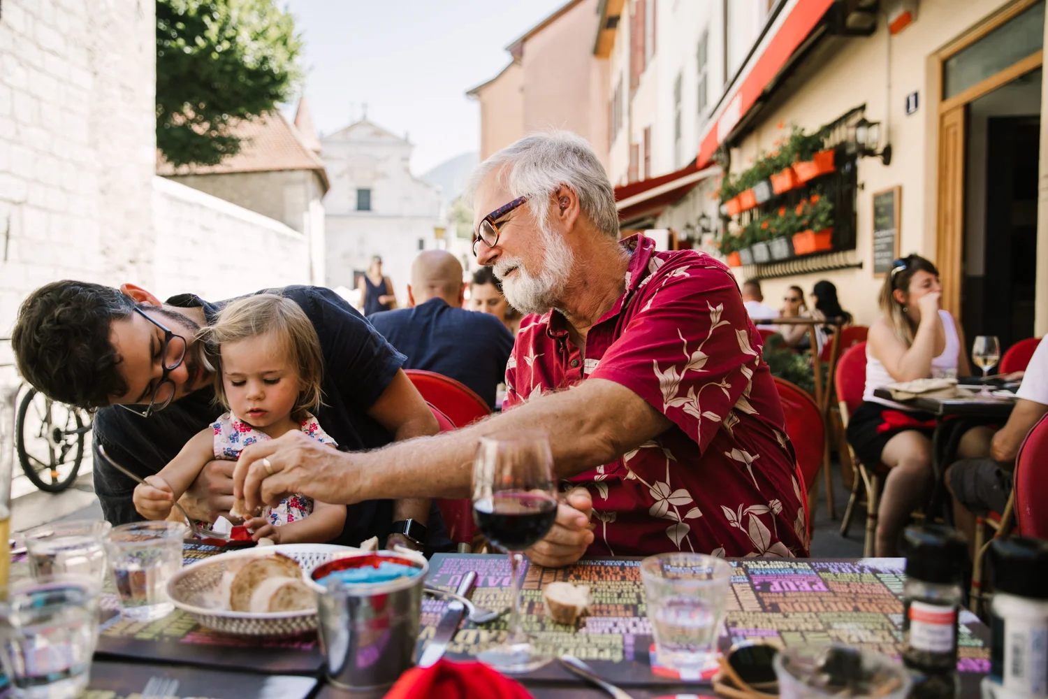 We stopped for lunch, some play time, and window shopping in Annecy—a beautiful medieval town with canals and bridges—before driving to Servoz. Our airbnb in the French Alps was probably the most beautiful place I have ever been, with an incredible view of Mont Blanc. Our hosts were master gardeners—and they brought us warm croissants on Sunday morning—plus there was a trampoline and a swing on the premises so our girl was a happy clam. We spent a morning in Chamonix, an evening at Lake Vert, and a day at Lac de Passy. With cooler weather and scenic views, we were in heaven. We ate a lot of picnics from the local market—paté sandwiches with lots of fresh mache (a delicate salad green)—but the last night we were there, Jeffery and my dad cooked a variation of coq au vin (chicken in wine, with tomatoes and veggies) and it was one of the most delicious meals I have ever eaten. A memorable end to a wonderful stay in Servoz. My dad snapped some photos of my little family in the garden that night, which I will treasure.