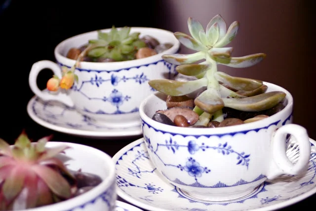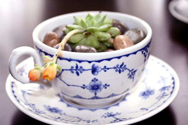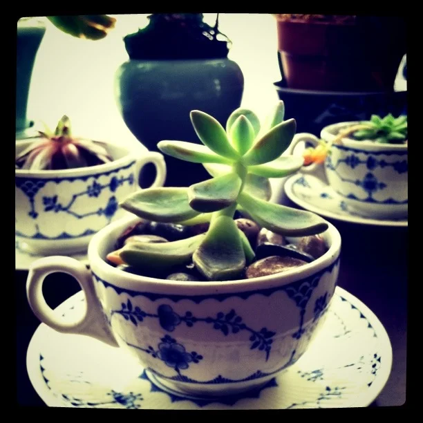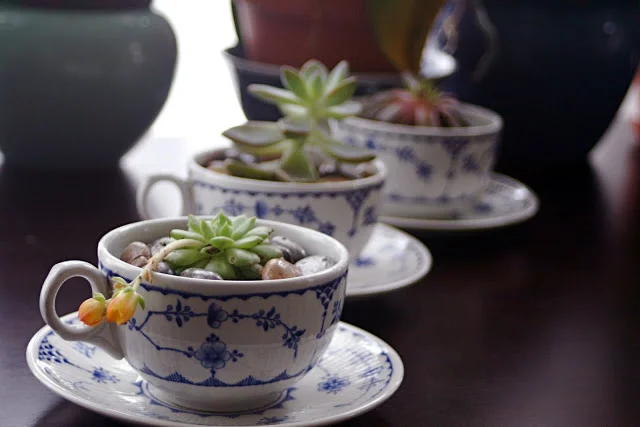 We also finally got around to planting succulents in the teacups Marina brought us. I've been wanting to ever sine I saw