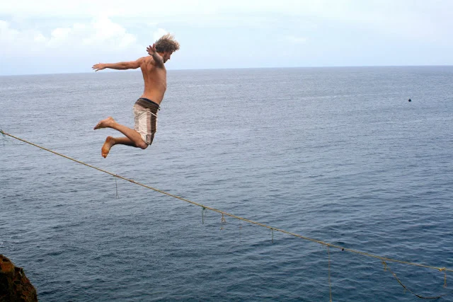 There's a sheer, 35-foot cliff and a rusty ladder to climb back up.