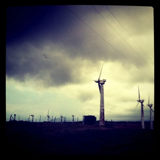 My camera ran out of batteries, but I was able to snap an instagram of the South Point wind farms on our way back.