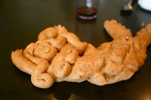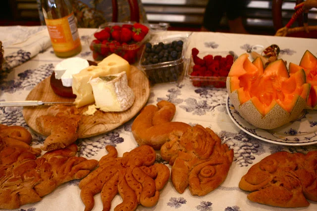 Every time she has an opening Marina bakes bread in the form of mermaids and sea creatures.