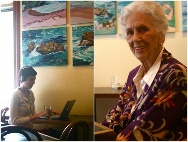 On Friday night I got off work early to attend my grandmother's art opening. She has some paintings hanging at Cafe Sapore in North Beach where she regularly meets her friends for lunch and scrabble marathons.